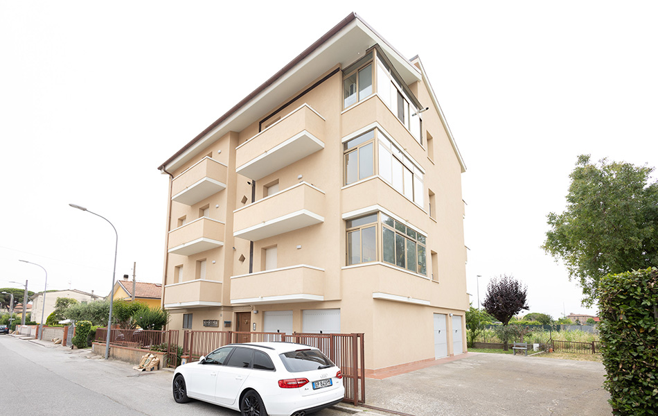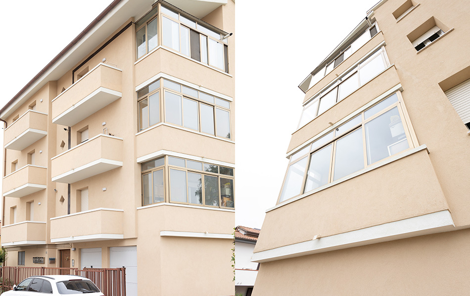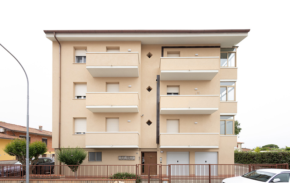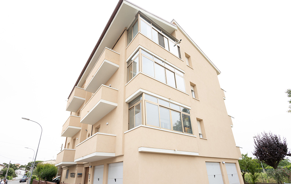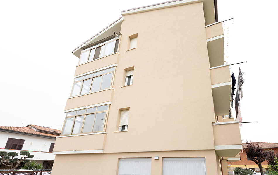 Intervento di riqualificazione energetica di un condominio mediante isolamento termico dell’involucro esterno sia sulle pareti che sulla copertura, oltre alla sostituzione degli infissi esistenti con nuovi infissi in PVC unito alla sostituzione degli avvolgibili.