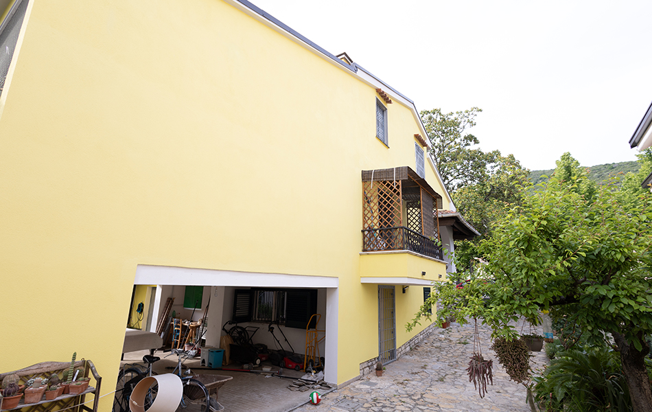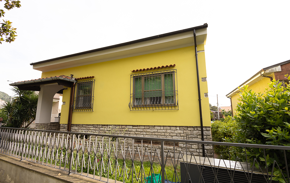 Intervento di recupero e restauro delle facciate con riqualificazione energetica di villetta unifamiliare mediante isolamento termico di alcune pareti esterne dell’edificio e della copertura attraverso la posa di cappotto termico unito alla sostituzione e posa degli infissi in PVC e oscuranti in alluminio, oltre alla sostituzione dell’ impianto di climatizzazione invernale mediante installazione di Caldaia a sistema Ibrido.